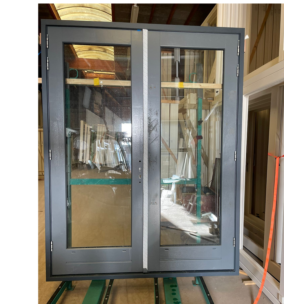 Aluminium kozijn met uitzetraam. De buitenkant is aluminium en de binnenkant grenen hout.