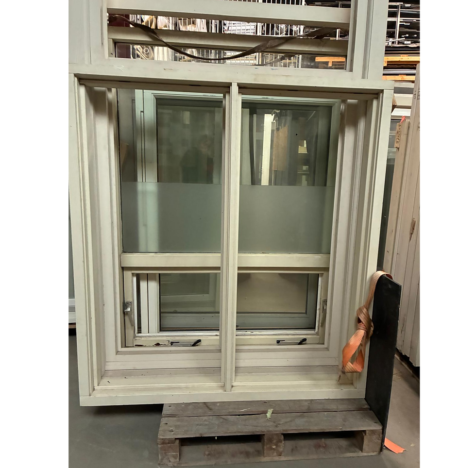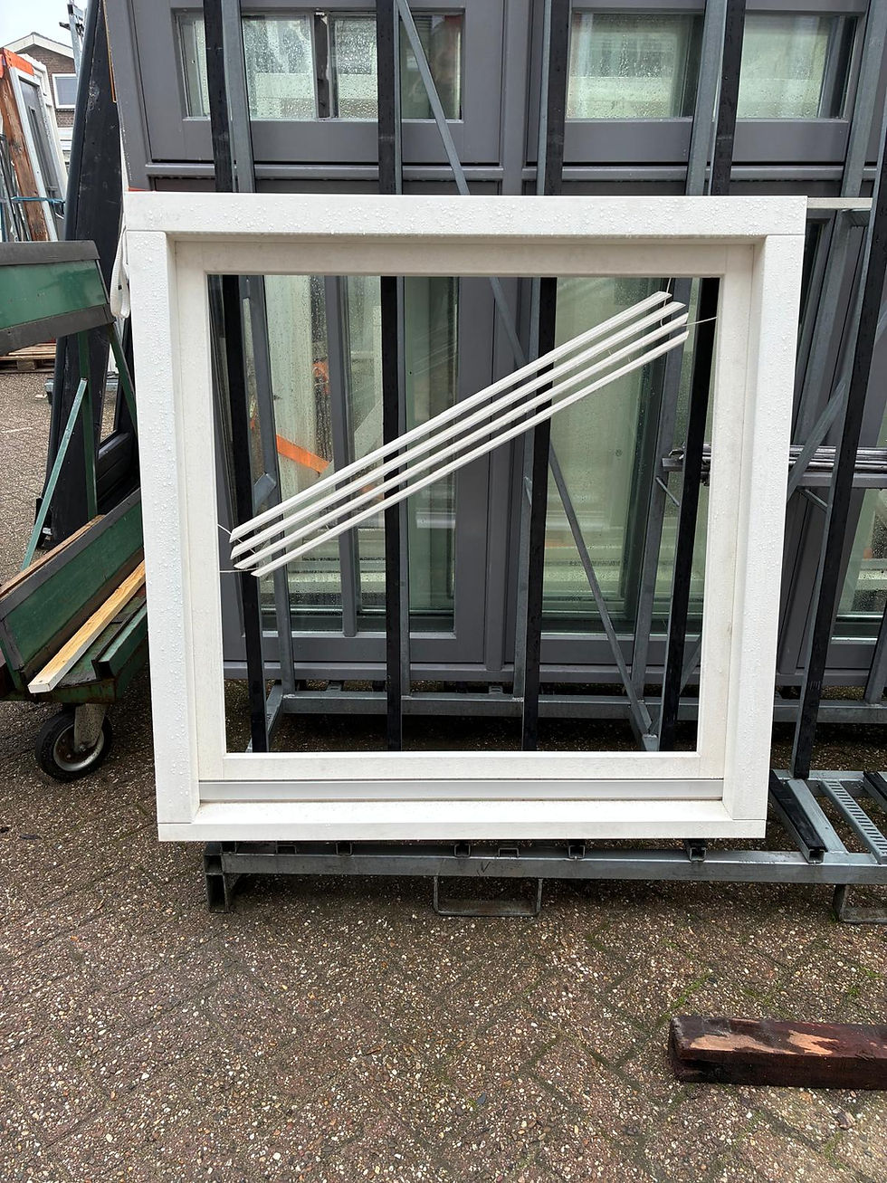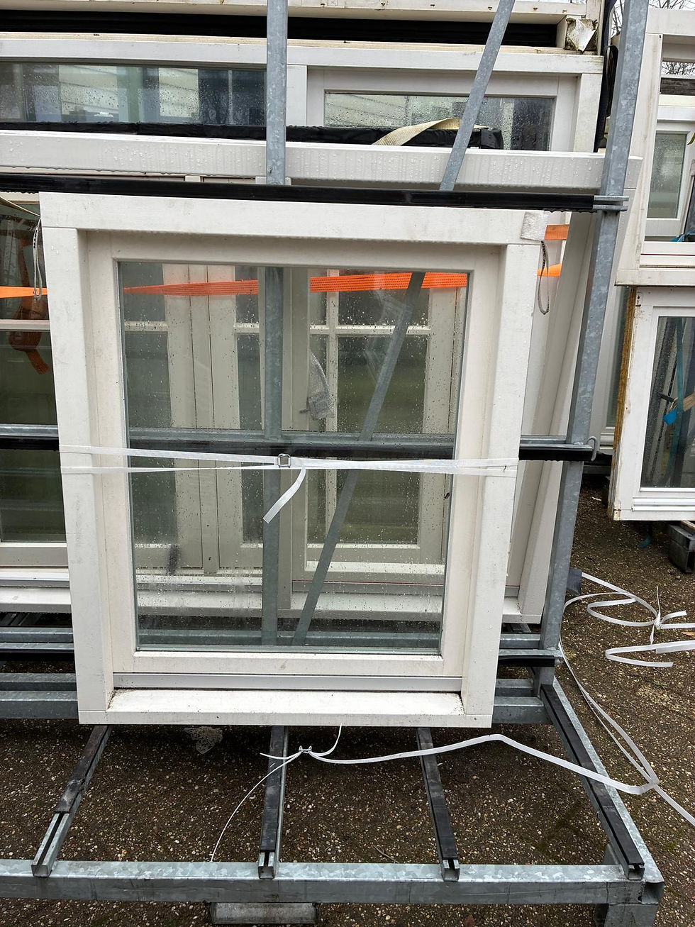 Hardhouten gevelkozijn met 3 klepramen. Deze is nooit gebruikt.